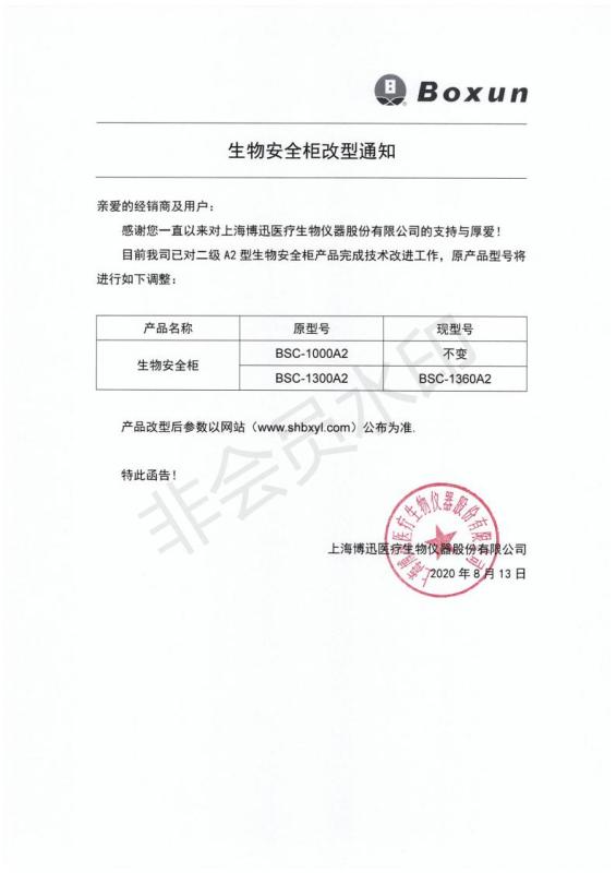 上海博迅生物安全柜改型通知