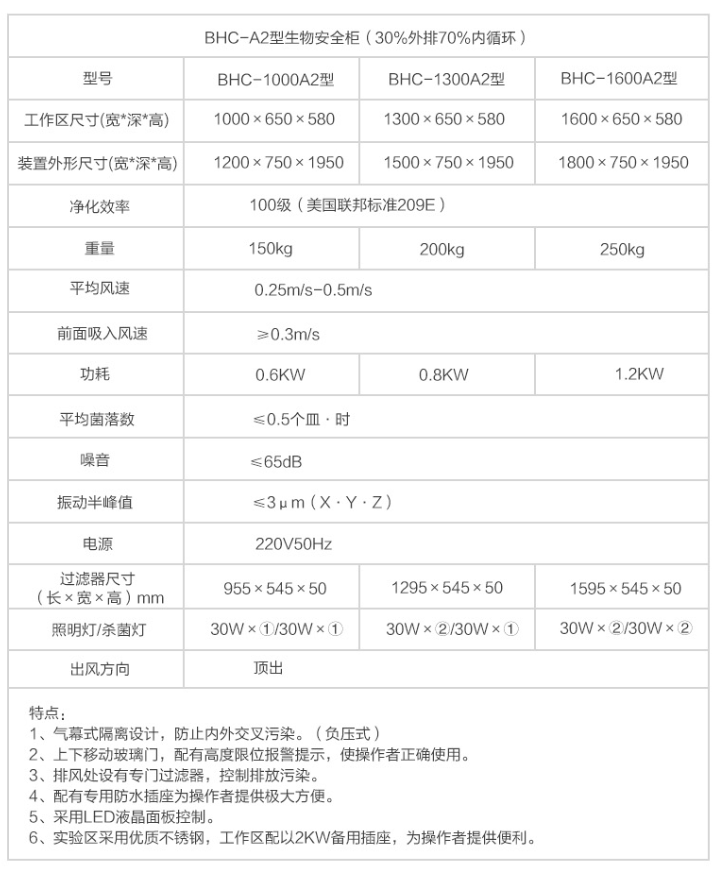 蘇州智凈潔凈安全柜 (30%排風(fēng),70%循環(huán))負(fù)壓(多人實(shí)用型)一體式 BHC-1600A2