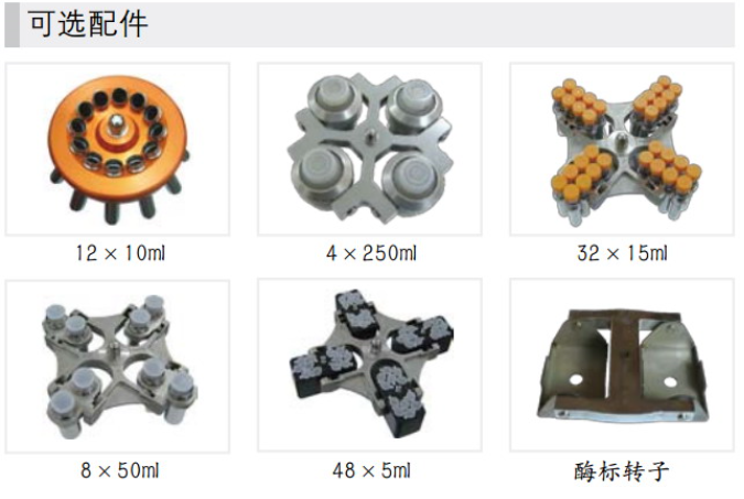 9.航空鍛造鋁轉(zhuǎn)子(僅限角轉(zhuǎn)子)及多種聚酰胺纖維適配器可選,可離心各類MTP微孔板、PCR板、細(xì)胞培養(yǎng)板和深孔板。